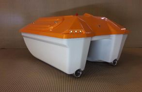 Nawigacja- łódka płynie do zapisanego punktu GPS, po dotarciu na miejsce wyłącza silniki i oczekuje na dalsze instrukcje. Możemy manualnie otworzyć klampy, zaczepy haczyków.